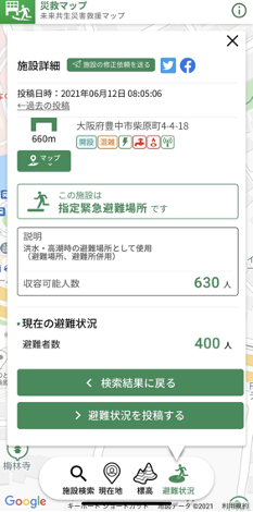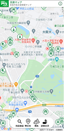 「災救マップ」は「未来共生災害救援マップ」の略称。避難所情報を共有するためのウェブ情報システム。寺社などの宗教施設と学校や公民館などの指定避難所や緊急避難場所を合わせ約30万施設を集約、インターネット上で公開しています。2013年に国の補助金で開発した大阪大学の知的財産で、2020年のリニューアルでは、スマートフォン、タブレット端末、ノートPCなどのブラウザーで避難所施設の開設状況、混雑状況、インフラ稼働状況などを発信・共有できる仕組みを搭載しました。