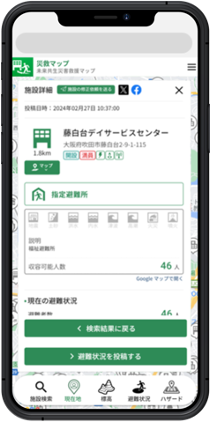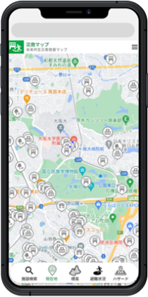 「災救マップ」は「未来共生災害救援マップ」の略称で避難所情報を共有するためのウェブ情報システムです。寺社などの宗教施設と学校や公民館などの指定避難所や緊急避難場所を合わせた約30万施設を集約し、インターネット上で公開しています。2013年に国の補助金で開発した大阪大学の知的財産で、2020年のリニューアルでは、スマートフォン、タブレット端末、ノートPCなどのブラウザーで避難所施設の開設状況、混雑状況、インフラ稼働状況などを発信・共有できる仕組みを搭載しました。