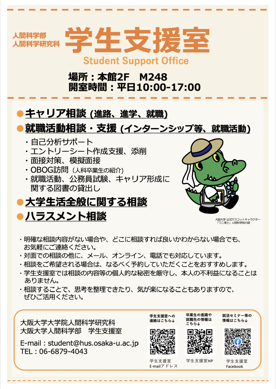 学生支援室フェイスブック: t.ly/lhJp (主に就活情報を掲載しています)